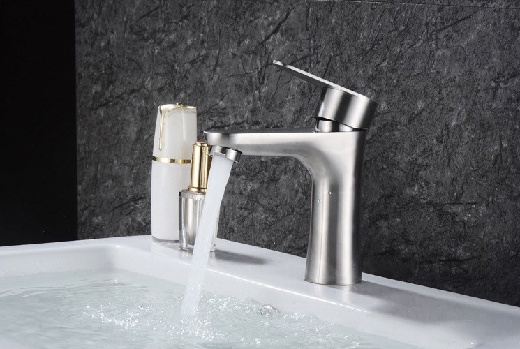Torneira de pia de aço inoxidável conservante OEM com acabamento de superfície escovado